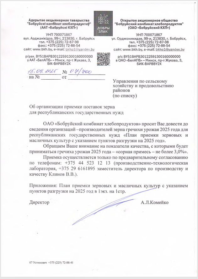 ОАО "Бобруйский комбинат хлебопродуктов"